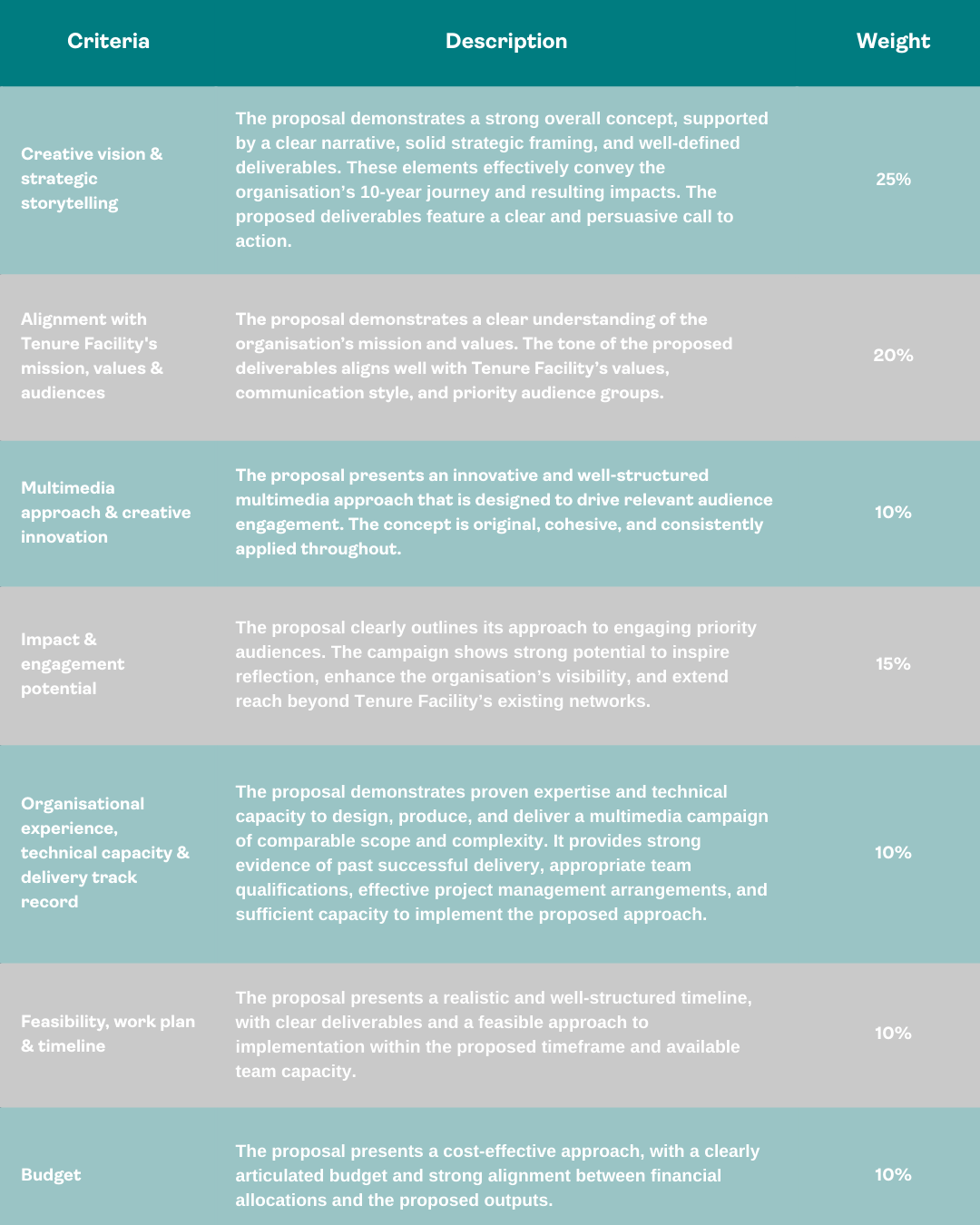 The selected lead partner / consortium will be responsible for co-designing, producing and delivering a proposed multimedia project approach, working closely with Tenure Facility to determine the most effective combination of formats, platforms, and storytelling tools.